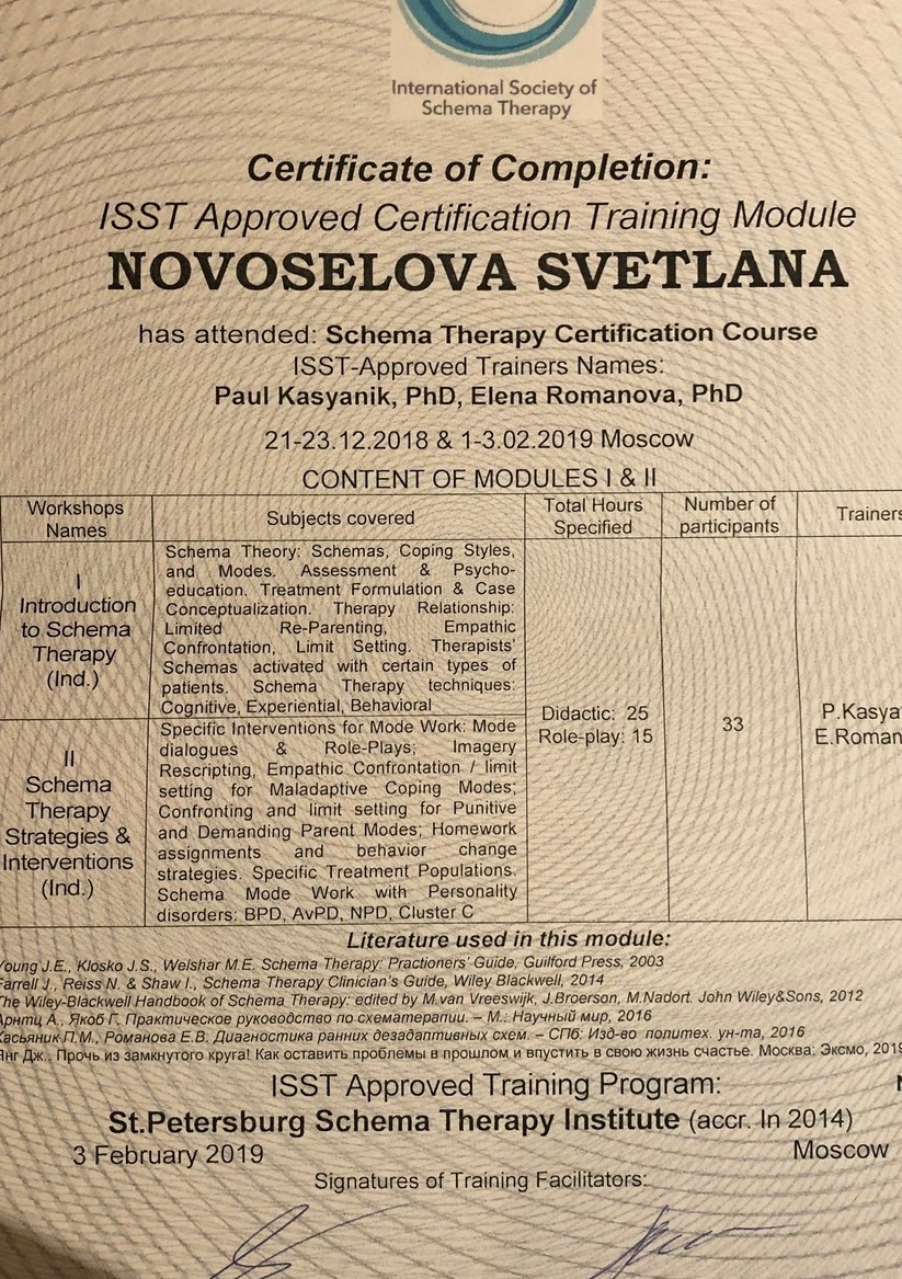 Психолог, сертифицированный схема-терапевт ISST, EMDR терапевт, НЛП-мастер.